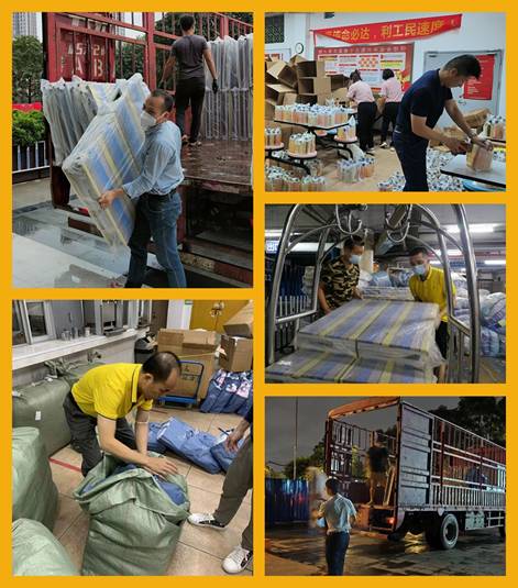 二是勇担使命,高效“保供”助力抗疫。公司组织属下企业广州市利工民针织有限公司向广州市发改委(广州市粮食储备中心)、市委组织部、广州市国资委、海珠区政府等多个单位紧急供应多批生活防疫物资达500多万元,包含2.8万件红马甲,3万多张被子,9890张折叠床,29631个枕头,1600张毛毯,3500件棉服,1000顶蚊帐,1000个睡袋。以上物资分别送往海珠区、白云区、番禺区、南沙区、越秀区以及东莞市、中山市等应急保障场所,为疫情防控工作提供有力保障。
