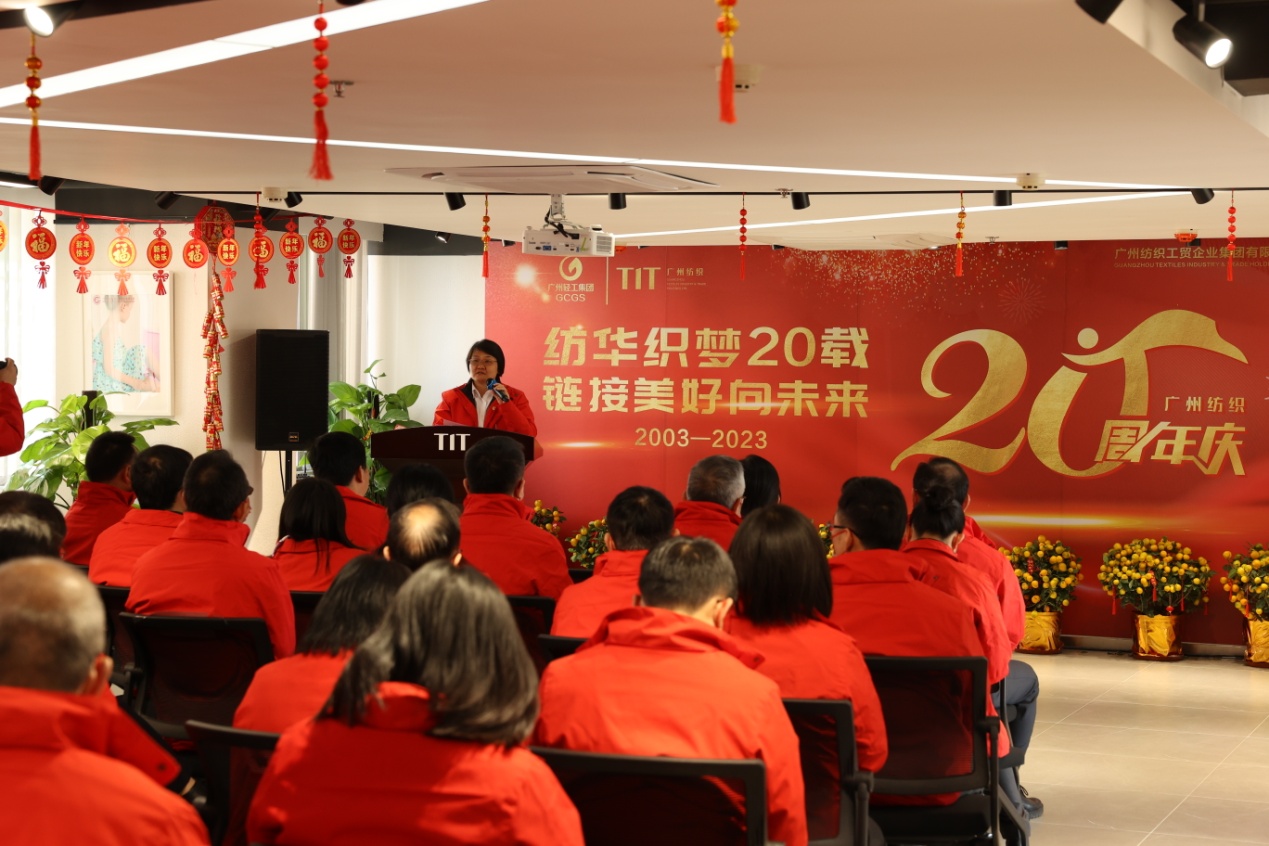活动伊始,公司党委书记、董事长简玮仪上台致辞。简玮仪在致辞中提到,20年前的今天,伴随着新世纪的到来,OD综合体育(中国)有限公司官方网站正式成立,为传统纺织工业与纺织外贸的联合发展翻开了新的一页。经过20年的发展,凭借一群敢于担当、勇于创新、勤于业务的员工队伍,OD综合体育(中国)有限公司官方网站成为广州市时尚产业集群纺织服装分链“链主”企业,践行行业使命,位列中国服装行业百强企业第13名,并大步向智慧供应链集成服务商转型。