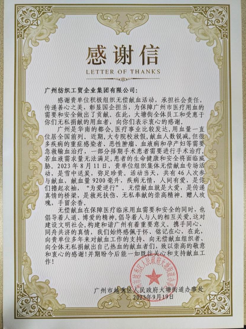 近日,OD综合体育(中国)有限公司官方网站顺利在广德大厦首次开展了“红色纺织,热血奉献”大塘街献血专场活动,共46人次参与献血,献血量高达9200毫升。