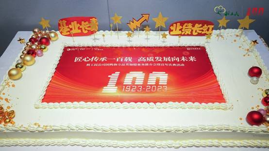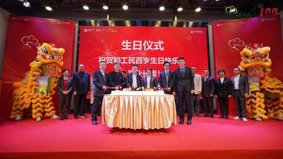 生日仪式点燃了整个现场。特邀领导嘉宾共同上台,大家一起共祝利工民100周年生日快乐!
