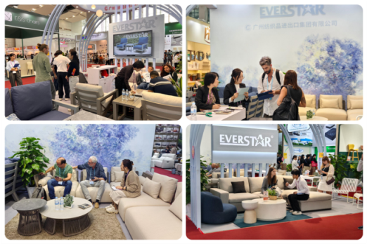 户外家具携自主品牌“EVERSTAR”最新研发设计的产品亮相展会,精准传递“真诚、创新、利他、共享”核心价值观,聚焦户外空间与家居生活深度融合,以“轻生活、更健康”为品牌主张,展现差异化参展定位,吸引全球客商关注。本届展会,户外家具展位再度成功入围“第138届广交会绿美展位”评选活动。