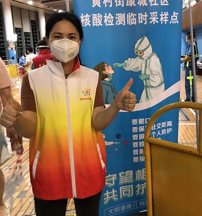 另一边毛轶同志主动请缨到黄村街康城社区大规模核酸现场支援。她细心指引老人小孩使用手机,一遍遍提醒大家“戴好口罩,打开手机,亮出核酸码,保持一米线,不要着急,有序排队”。一直忙碌到凌晨一点多,全部人员都完成了核酸检测,她才拖着疲惫的身体回家。